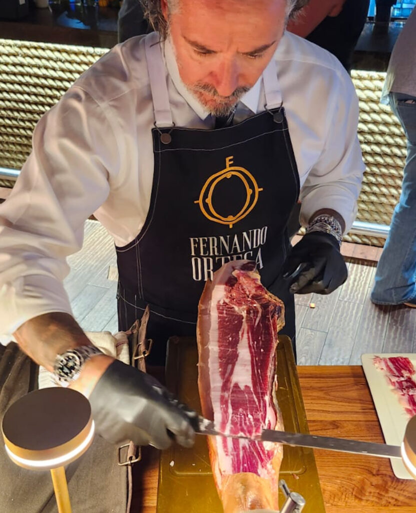 Master carver with authentic Spanish ham (Iberico or Serrano) for the complete Spanish gourmet experience.