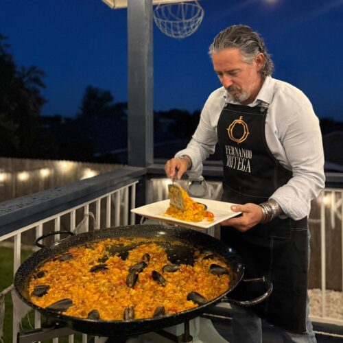 We bring everything you need — fresh, hand-selected ingredients, traditional paella pans, and the vibrant energy of live cooking. Right in front of your guests, Chef Fernando Ortega will prepare a paella that fills the air with the aromas of saffron, vegetables, and premium meats or seafood. It’s more than a meal — it’s a show, an experience, and a taste of Spain at your table.